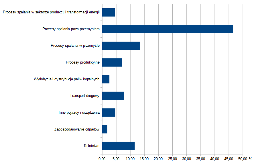 Procesy spalania poza przemysłem to w głównej mierze niska emisja, czyli emisja zanieczyszczeń na wysokości do 40 m, pochodzących głównie z domowych pieców oraz lokalnych kotłowni.