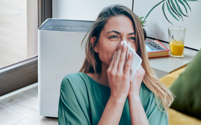 W przypadku alergii warto zadbać zarówno o czystość, jak i o optymalne nawilżenie powietrza. Jego prawidłowa wilgotność powietrza wynosi 40-60%. Dla alergika szkodliwe jest zarówno przesuszenie, jak i przewilżenie powietrza – w suchym powietrzu unosi się więcej alergenów, a wilgoć sprzyja rozwojowi pleśni i roztoczy kurzu domowego. Nawilżacz powietrza pomoże utrzymać pożądany przez nas poziom wilgotności.