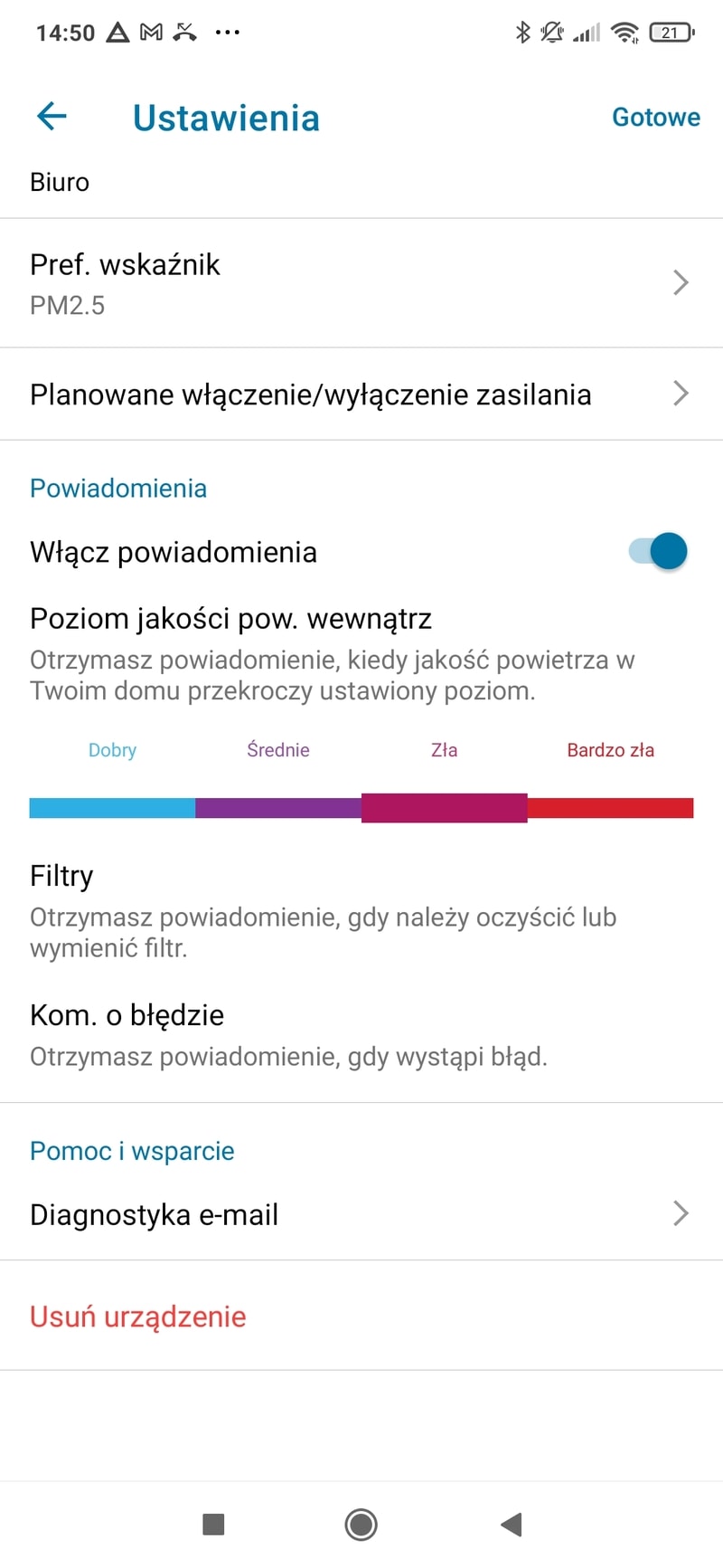 Jeżeli lubimy wygodę, możemy sterować Philipsem AC3829/10 z poziomu dedykowanej aplikacji mobilnej Clean Home+, znanej z innych oczyszczaczy Philips. Zastąpiła ona niedawno poprzednią AirMatters. Do najważniejszych udogodnień aplikacji należą: